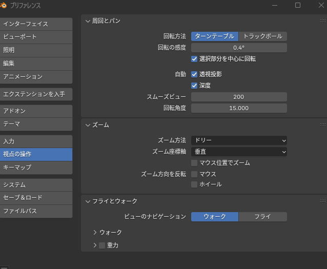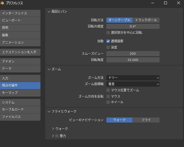 User Preferencesの「視点の操作」から切り替えられるので、自分の作業スタイルに合った方式を選ぶことで快適な視点操作が可能になります。